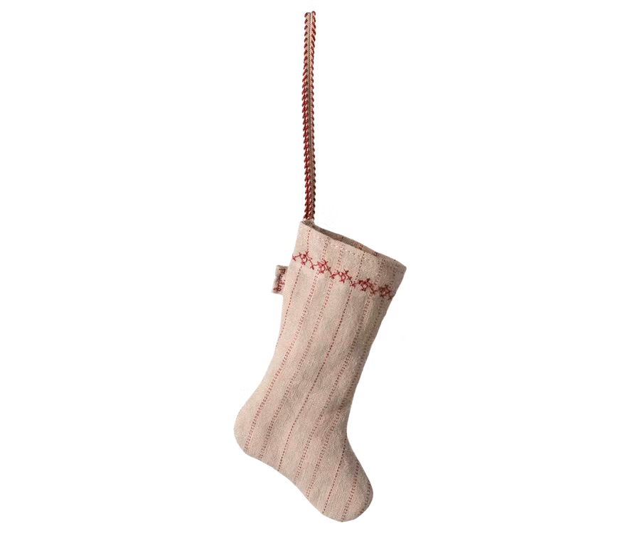 Maileg Julstrumpa till Dockskåpet - Randig Beige Stocking Ornament Stripe Sand