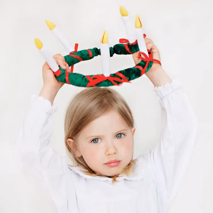 En ljuvlig luciakrona i mjukt tyg från Oskar & Ellen som passar perfekt för de små, den skaver inte och lyser hela tiden. Matcha med det söta tärnljuset ifrån samma märke och du är redo för December.