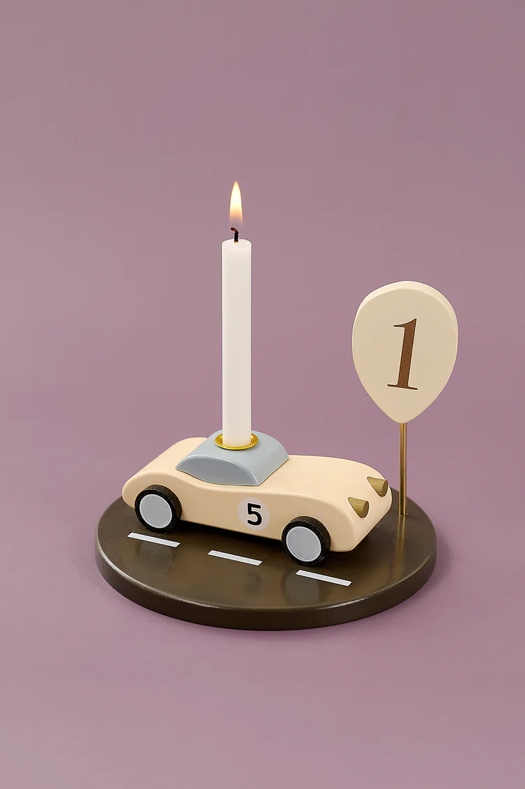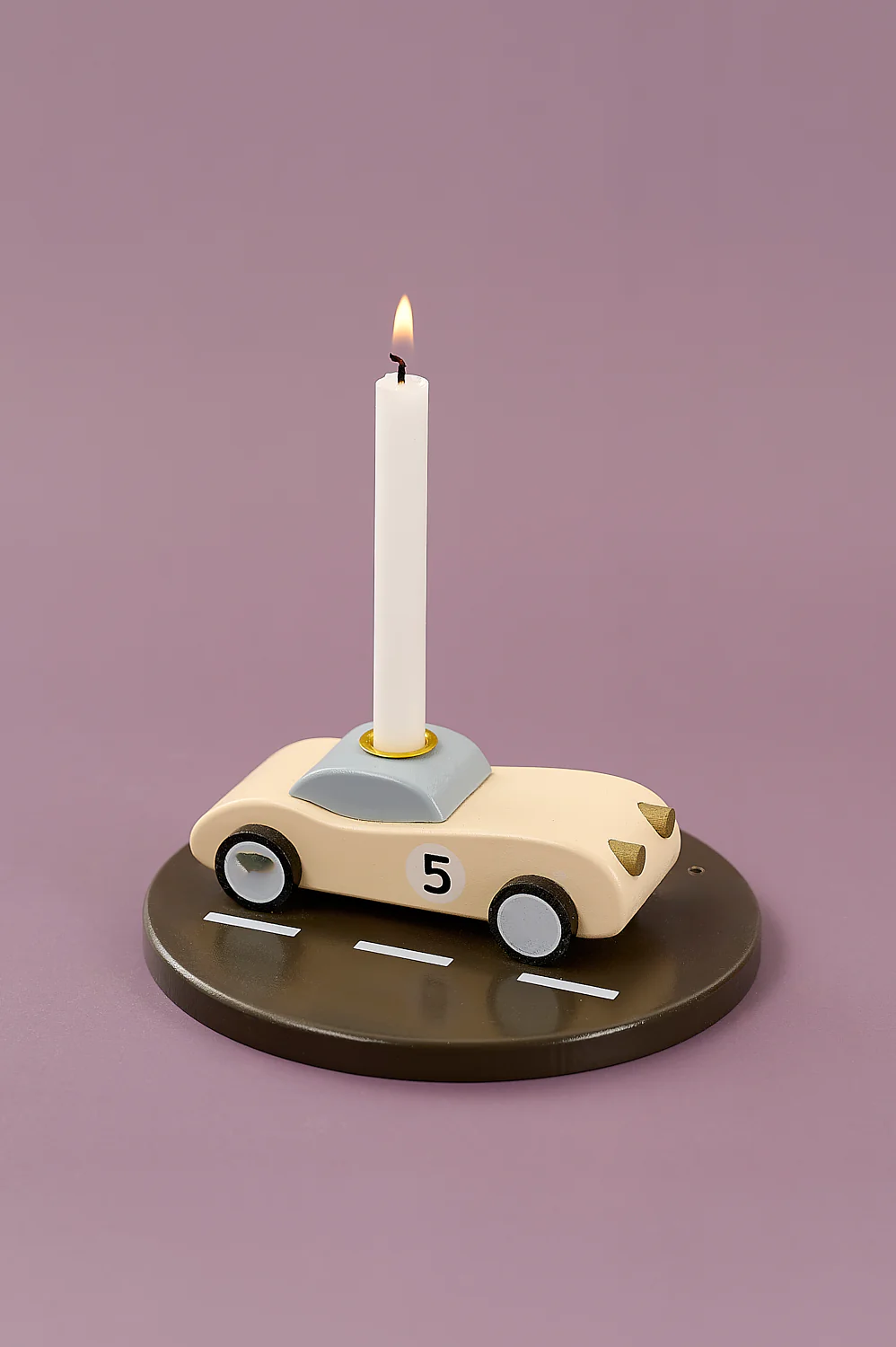 En underbar ljusstake i form av en fin bil som blir perfekt att dekorera bordet eller frukostbrickan med på födelsedagens morgon. Ljusstaken kommer fint förpackat i en presentförpackning vilket gör det till en uppskattad gåva att plocka fram år efter år. Komplettera gärna ljusstaken med sifferballonger 0-9 och ljus, som båda köps separat.