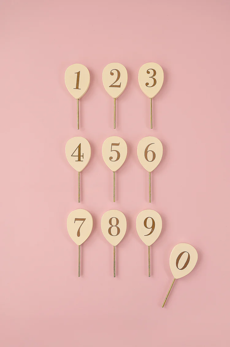 Siffror till Födelsedagståg 0 - 9 - Jabadabado Sifferballonger i Trä Beige med Guldsiffror