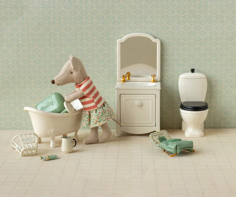 Maileg Litet Badrumsskåp Handfat med Spegel & Skåp Vitt - Maileg A/W -25