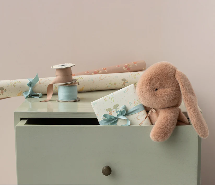 Vackert presentpapper med Mailegs unika mönster. Det passar lika fint att tapetsera ditt dockskåp med, som att slå in presenter.