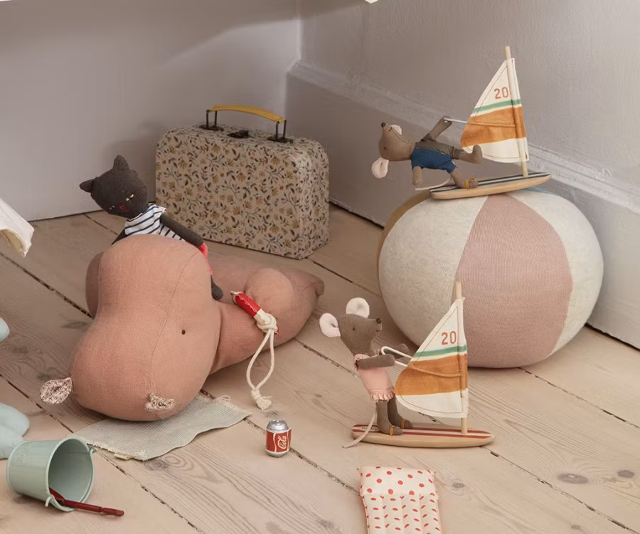Maileg Surfare Lillasyster Mus med Rosa Baddräkt och Magneter i Händerna