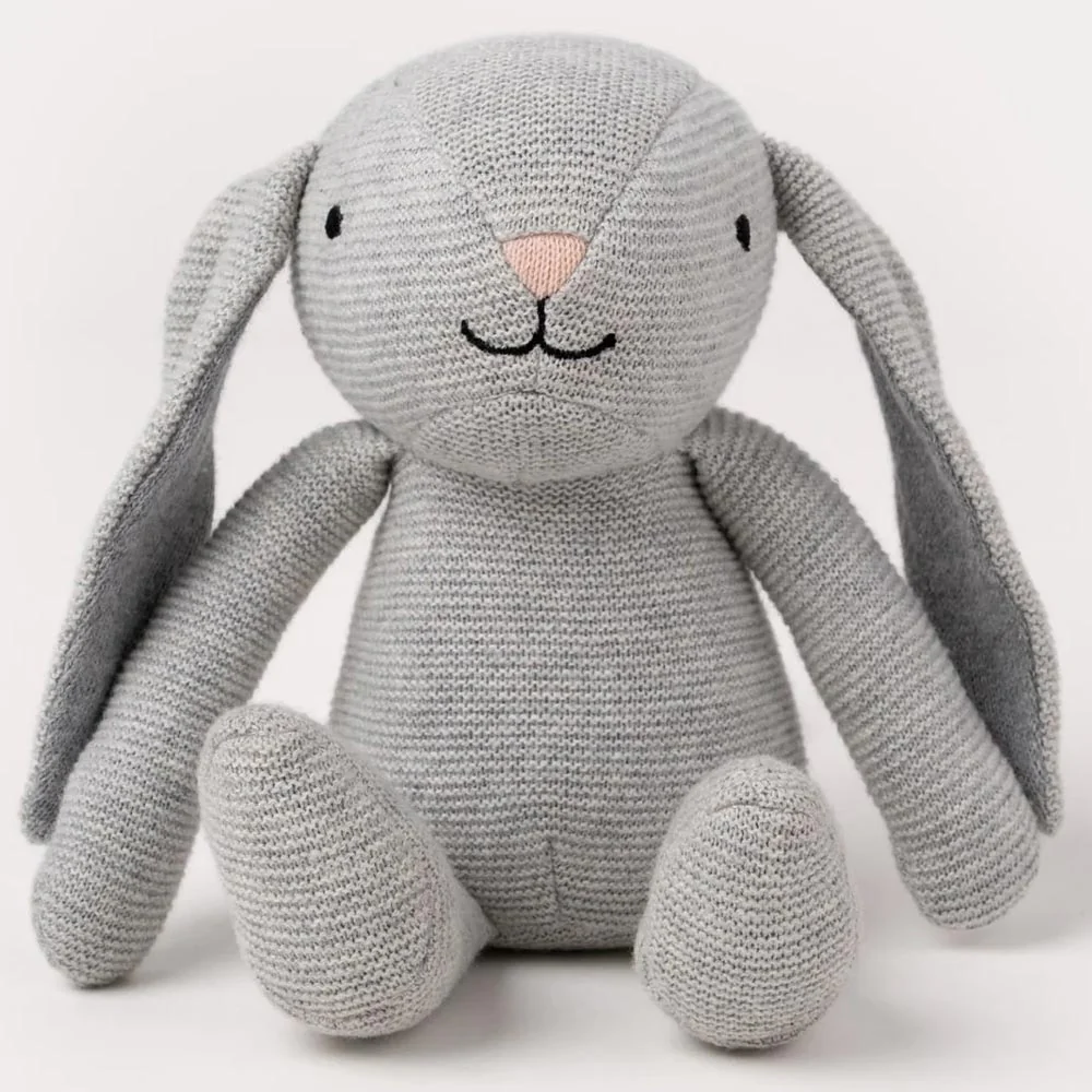 En gosig och supermjukt stickad kanin som garanterat blir en ny favorit att både krama och leka med. Kaninen går fint att tvätta i 40 grader och är gjord i 100% ekologisk bomull.